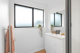 Three bedrooms and a neatly appointed bathroom shape the accommodation, supported by a separate toilet and laundry, with a heat pump and DVS system securing comfort throughout the year.